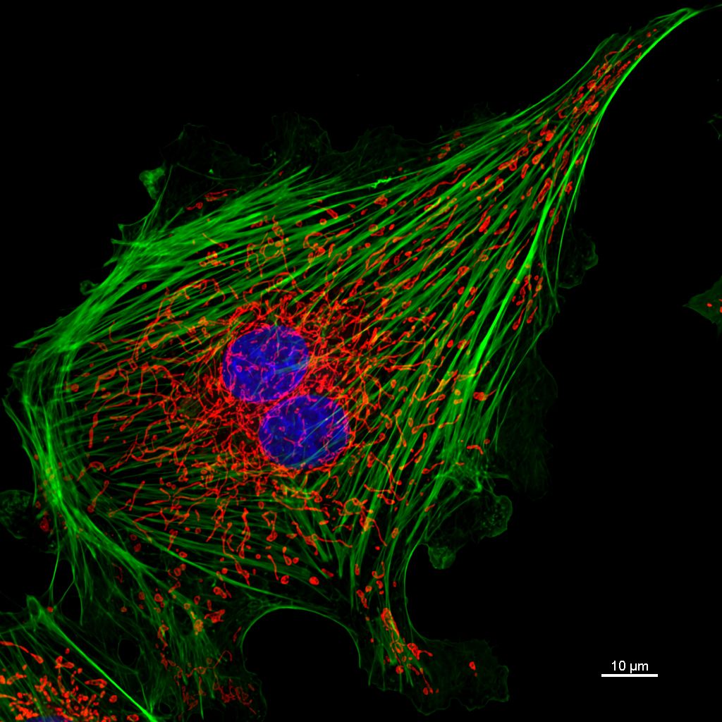 Our Nikon A1 Laser Scanning Confocal Microscope is a state-of-the-art Nikon A1 laser scanning confocal microscope (photo, right). This system is mounted on a customized, inverted, fully electronic, TE-2000E2 microscope body. This system offers unparalleled spatial resolution in the x, y, and z planes. There are four excitation lines of 405, 488, 561, and 640nm, which are driven by four (4), independent solid-state lasers (superior stability and longevity) mounted on an acousto-optic tuning filter (AOTF)-integrated laser launch.