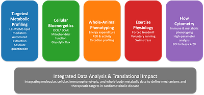 Spanning from the molecule to cell to the intact animal, this Core addresses metabolic needs by offering an integrated approach. This includes: Sciex 5500 Agilent Seahorse XF 24e Metabolic/Behavioral Phenotyping System Various Exercise Systems